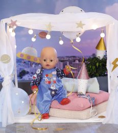 BABY born йде на свято? Або вирішила причепуритися на свій день народження? Але ж ми знаємо, що їй щодня хочеться виглядати стильно та яскраво! І з новим святковим комбінезоном для ляльки це стало ще простіше! Насичений чарівний синій колір зробить Вашу BABY born прикрасою будь-якого свята!