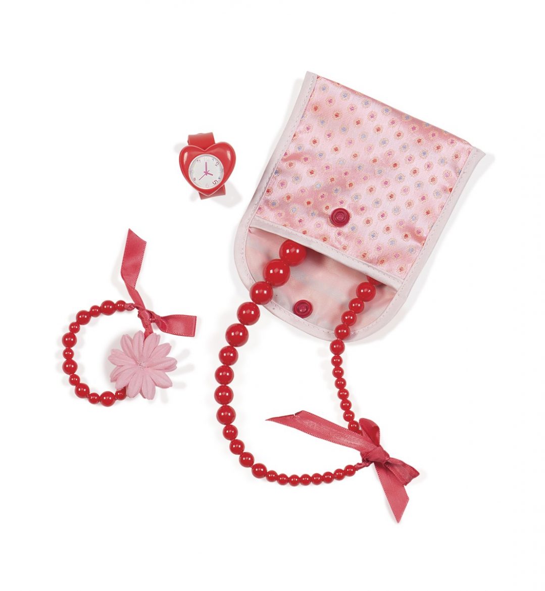 Ви з улюбленицею OUR GENERATION збираєтеся на вечірку? Тоді до модної сукні потрібно підібрати і модні аксесуари! Намисто, браслет з квіточкою на одну руку і годинник-сердечко – на іншу. І ви готові до свята! А коли повернетеся додому, складіть прикраси в спеціальну сумочку, щоб не втратити.