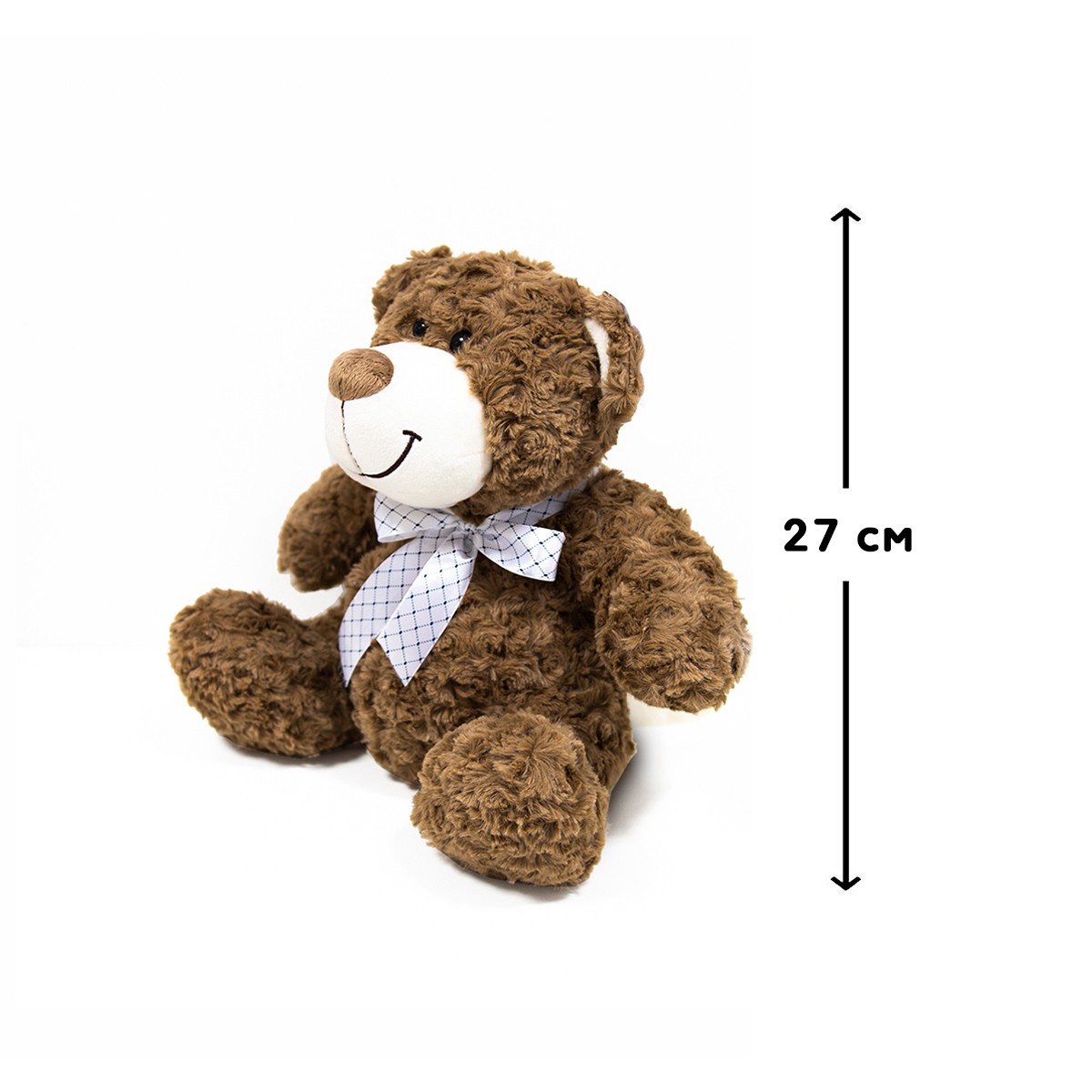 Ведмедик зроблений зі штучного хутра, з м’яким поліестером всередині. Висота іграшки – 27 cm.