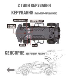 Такі характеристики дозволяють автомобілю GESTURE SENSING з р/к та з сенсорним керуванням – DIZZY імітувати маневри справжньої машини, забезпечувати стійкість і краще зчеплення автомобіля з дорогою.